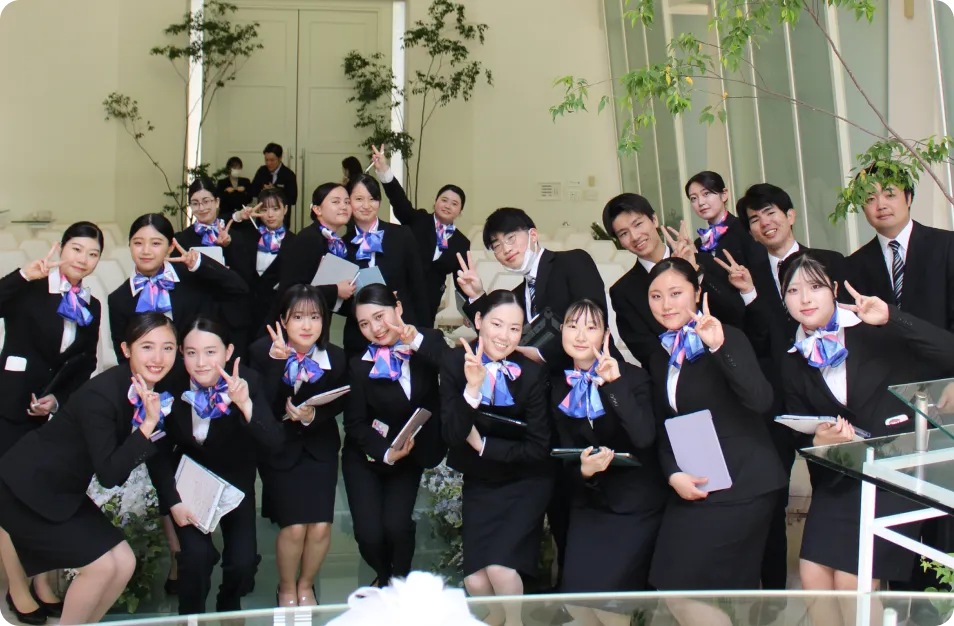 現場で求められる立ち居振る舞いやホスピタリティを実践的に学び、社会で通用する品格と対応力を身につけます。