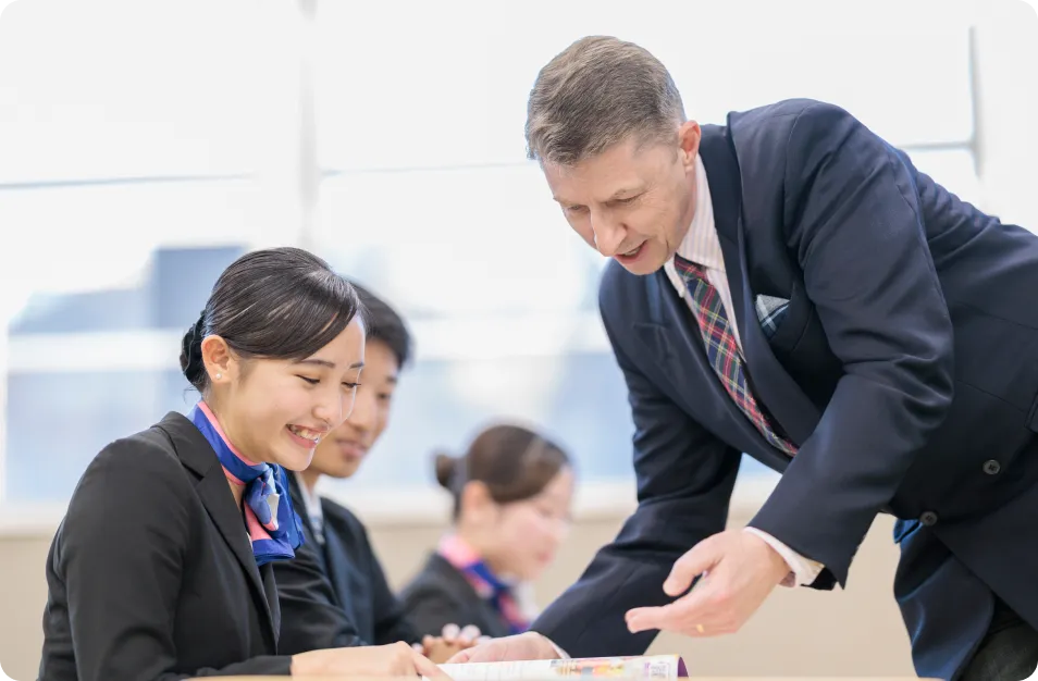 ホテル業務に必要な知識や対応力を、現役ホテリエの講師が経験に基づいて指導します。