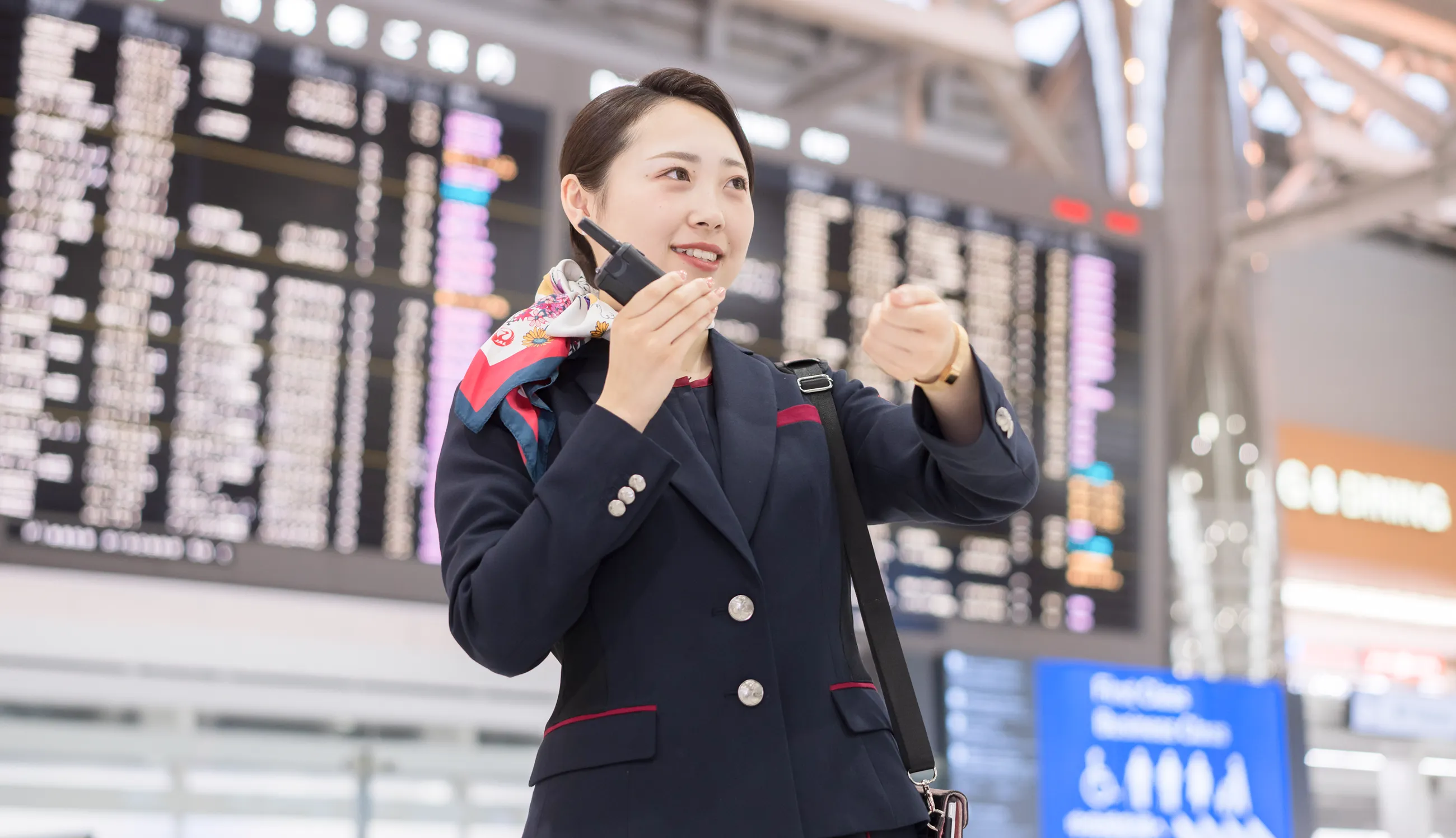 空港の顔として、お客様の旅を笑顔でサポートします。搭乗手続きや案内、トラブル対応などを行い、安全で定刻の出発を支えます。
