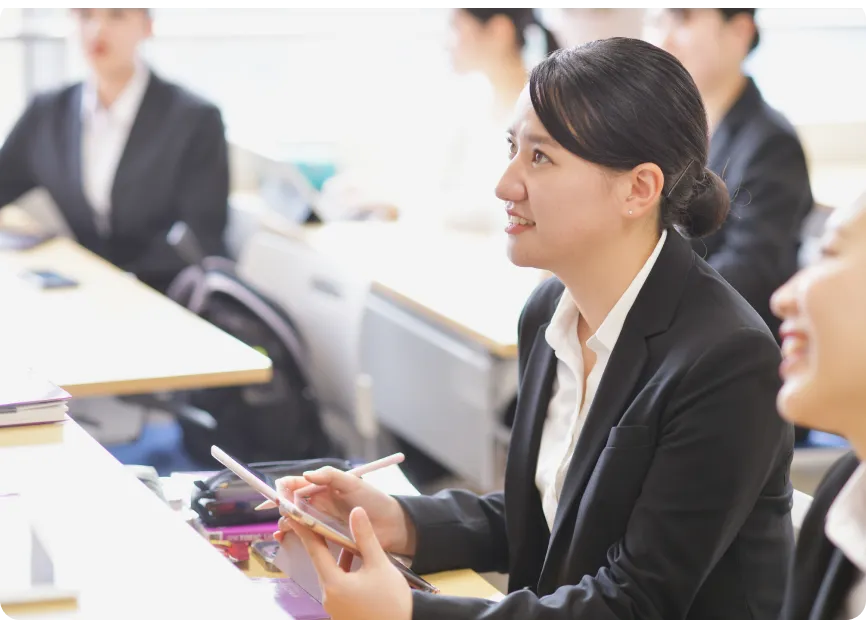 就職活動を見据えて計画的に資格取得へ取り組めるよう、きめ細かなサポート体制を整えています。限られた学習時間や費用の中で最適な選択ができるよう、一人ひとり丁寧に指導します。日々の授業での対策に加え、試験前の個別指導にも対応。対象資格を取得した学生には表彰制度と副賞を設けており、努力と挑戦がしっかりと評価される環境で前向きに資格取得に励めます。