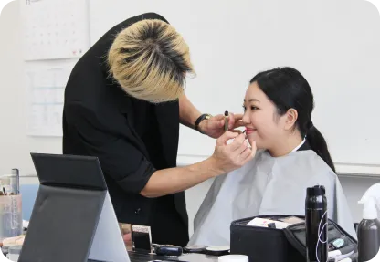 外部講師による特別講座です。希望する業界にふさわしいメイクやヘアスタイル、スーツの着こなしを、実習形式で基礎からしっかりと習得します。