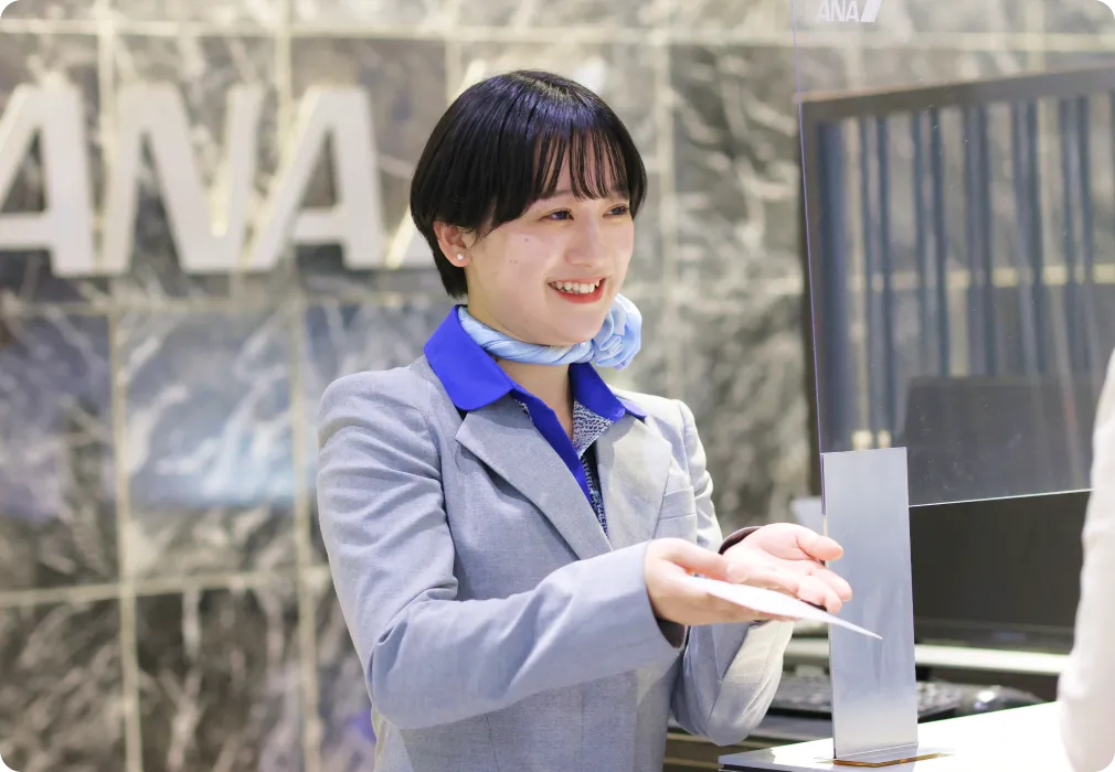 国際線カウンターにて、ご出発されるお客さまの搭乗手続きや搭乗口でのご案内業務を担当しています。また、ご到着時の忘れ物やお荷物が破損・紛失した際に対応をする手荷物サービス業務も担当しています。安全上の理由からお客さまのご要望にお応えできないこともあるのですが、その中で自ら最善策を提案し、お客さまから感謝の言葉をいただけた時には大きなやりがいを感じます。時には天候や整備不良などによって遅延や欠航が発生することもありますが、スタッフ全員で力を合わせ、その一便を無事に出発させることができた時の達成感は格別です。