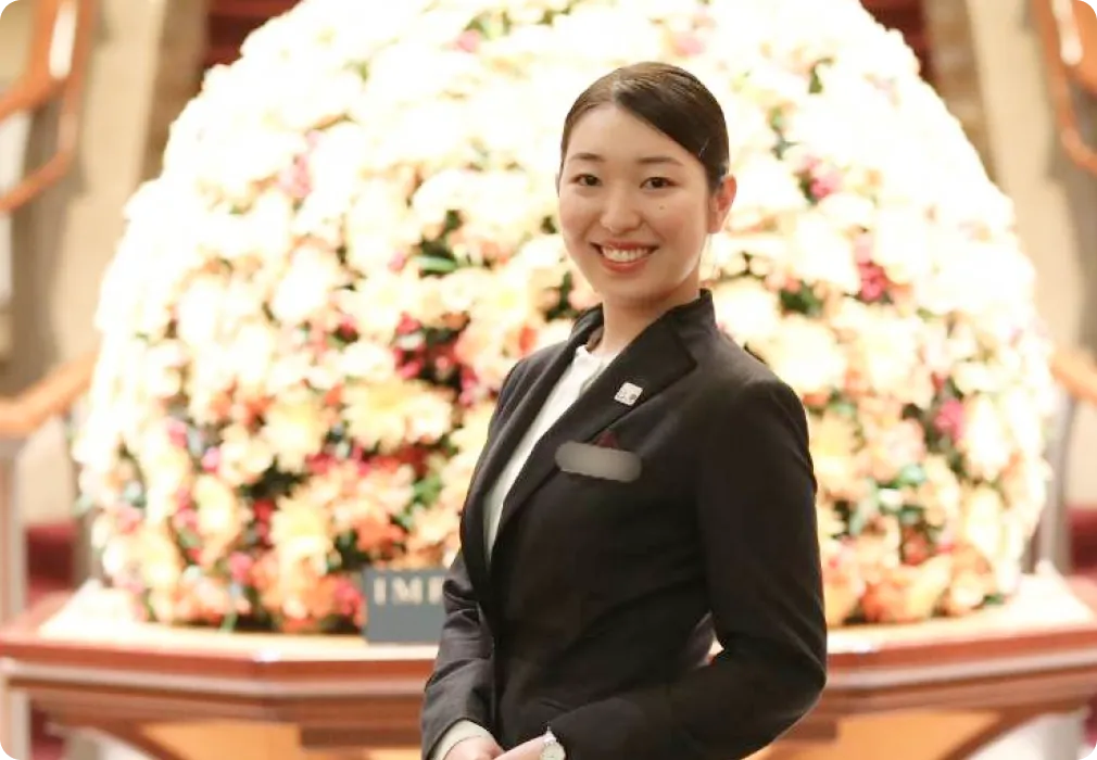 主な業務は「接続(お客様の電話を担当部署とつなぐ)」です。顔の見えない相手が何を思っているか、言葉の端々やトーンで判断します。時には道案内やモーニングコールなども担当しています。「正しい言葉遣い」や「一般常識」などをナリビ在学中に学べたことが今の仕事に活きています。今後も「声の玄関」としてホテルを支えていきたいです。進路の決定は人生において大きな一歩です。大切なのは「自分が何をしたいか、そのために何をすべきか」。夢を追いかけるための場所として自信をもってナリビをオススメします。卒業生として、皆さんの進路を応援しています!